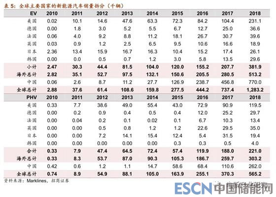 海外市場發(fā)展比較穩(wěn)健,近幾年也開始加速。海外市場2018年新能源汽車(EV+PHEV)銷售81.6萬輛,其中純電動和插電混動銷售量分別達到51.3萬和30.3萬輛,同比分別增長51.1%、82.9%和16.7%。