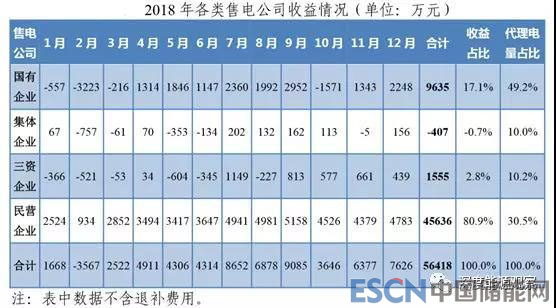 從各類售電公司收益情況來看,國(guó)有售電公司全年收益0.96億元,占全年總收益17.1%;民營(yíng)售電公司全年收益5.64億元,占全年總收益80.9%。