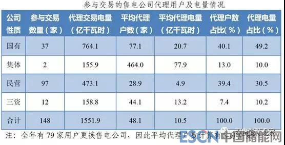 從代理電量市場(chǎng)份額方面來看,國(guó)有售電公司全年代理交易電量764.1億千瓦時(shí),代理電量占比49.2%;民營(yíng)售電公司全年代理交易電量473.1億千瓦時(shí),代理電量占比30.5%。