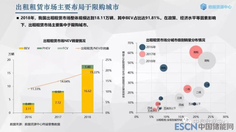 出租租賃市場2018年整體規(guī)模達(dá)到18.11萬輛,同比增長120%。區(qū)別于個人新能源市場,出租租賃市場主要以BEV為主,占比高達(dá)92%,其中A00級轎車多應(yīng)用于分時租賃,A級轎車、MPV多用于出租車和網(wǎng)約車。受政策、經(jīng)濟(jì)水平、使用場景等因素影響,出租租賃市場主要集中于一線限購城市。