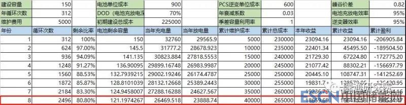 當(dāng)年收益=峰價×當(dāng)年放電量-谷價×當(dāng)年充電量
