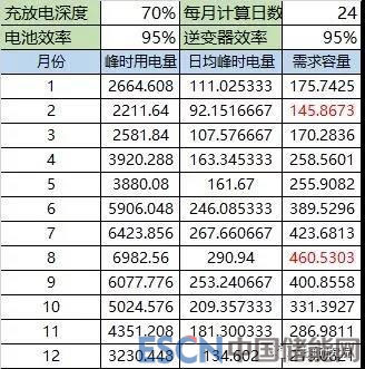 根據(jù)企業(yè)過去一年每月用電情況,可通過以下公式計算儲能電池需求容量。