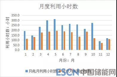 圖1:風(fēng)電和光伏月度發(fā)電利用小時數(shù)