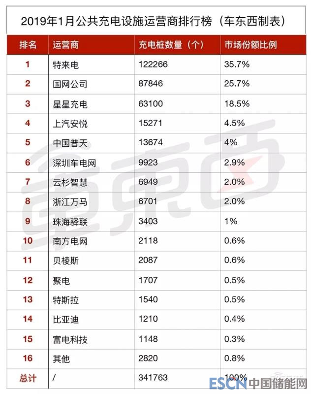 ▲2019年1月公共充電設(shè)施運營商排行榜