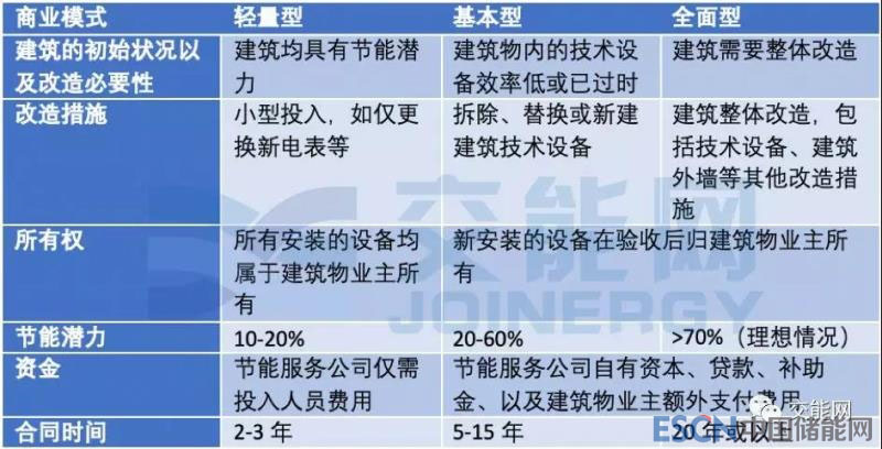 節(jié)能合同管理的商業(yè)模式根據(jù)業(yè)主的要求以及建筑物的情況有所區(qū)別,三種常見(jiàn)的商業(yè)模式是輕量型、基本型、全面型節(jié)能合同管理,下表是這三種商業(yè)的不同特點(diǎn):