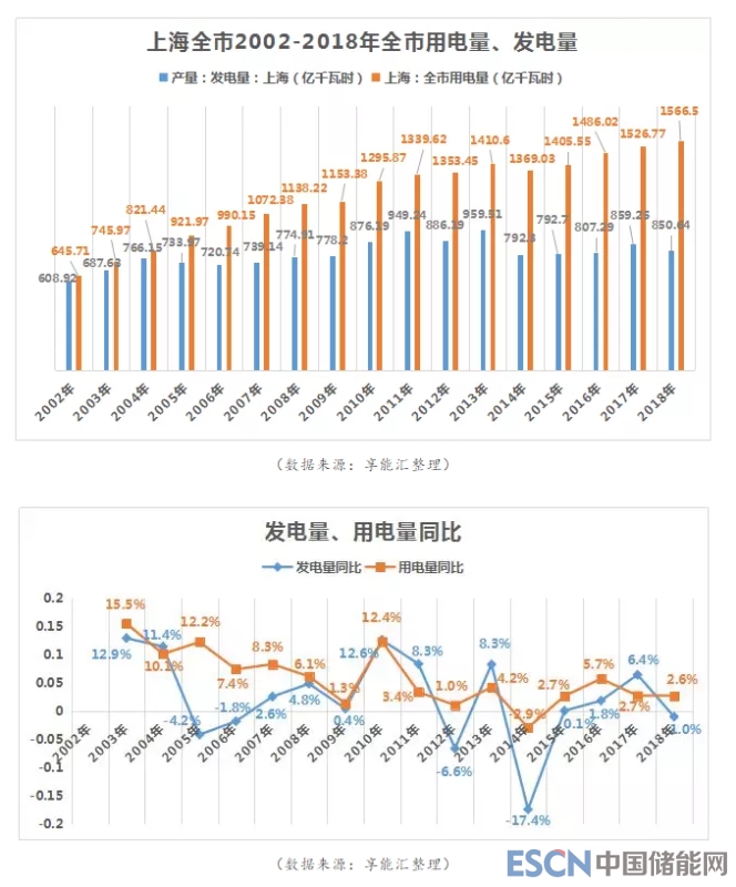 2018年,上海市發(fā)電量850.64億千瓦時(shí)(6000千瓦及以上電廠),比上年下降1.46%,外省市凈調(diào)入電量710.07億千瓦時(shí),增長7.38%,全社會(huì)用電量1566.66億千瓦時(shí),增長2.61%。