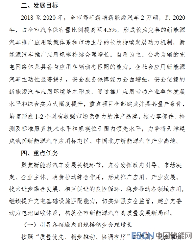 天津市發(fā)布新能源汽車推廣應用實施方案(2018-2020年)