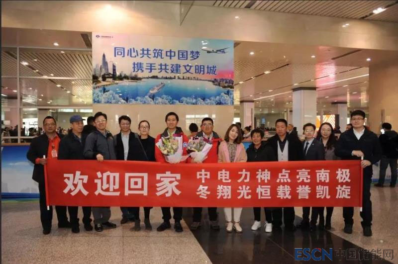 原來,中電力神子集團(tuán)南極泰山站新能源系統(tǒng)建設(shè)項(xiàng)目組的兩位工程師正好當(dāng)天凱旋,剛下飛機(jī)到公司。項(xiàng)目組的呂冬翔博士和鄭光恒工程師,作為中國第35次南極考察隊(duì)成員在2018年11月出征,歷盡千辛萬苦在2019年2月1日勝利完成泰山站新能源系統(tǒng)的安裝、調(diào)試并網(wǎng)運(yùn)行全部任務(wù)。他們自2月3日從泰山站啟程返回,一路搭乘雪地車、雪橇、直升機(jī)、雪龍船,馬不停蹄、舟車勞頓,終于在3月11日晚上到達(dá)上海母港,接受必要的檢驗(yàn)檢疫后下船飛回天津。沒想到航班提前半個多小時(shí)到達(dá),大會臨時(shí)決定請他們參加,于是就出現(xiàn)了本文開頭的一幕。