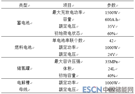 蓄電池、燃料電池、儲氫罐及電解槽具體參數(shù)如表2所示。