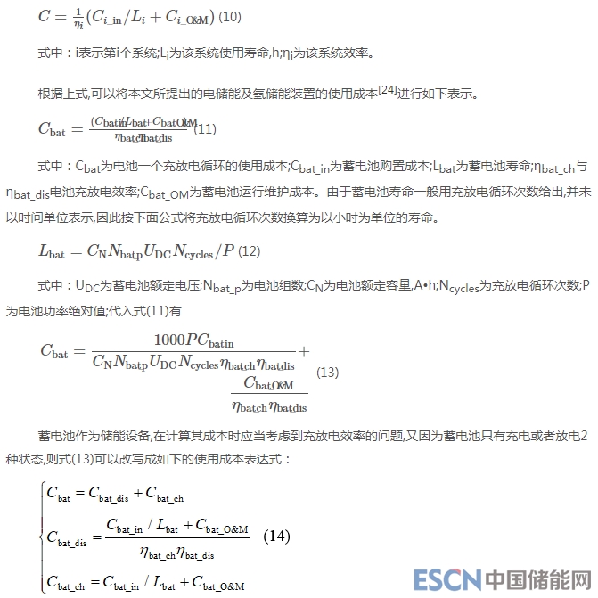 在該系統(tǒng)中,光伏陣列始終工作在最大功率點(diǎn)跟蹤模式,其運(yùn)行成本固定,當(dāng)需要儲能系統(tǒng)對光伏與負(fù)載之間的功率差額進(jìn)行補(bǔ)齊或者存儲時(shí),能量管理系統(tǒng)應(yīng)當(dāng)評估最方便且使用成本最低的存儲系統(tǒng)。由于本文模型為孤島模型,因此沒有燃料成本,各系統(tǒng)使用成本C僅考慮每個(gè)設(shè)備的購置成本Cin以及操作和維護(hù)成本COM。