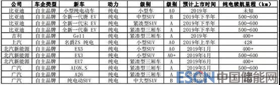(比亞迪與主要競(jìng)爭(zhēng)對(duì)手2019年即將上市純電動(dòng)車(chē)比較)