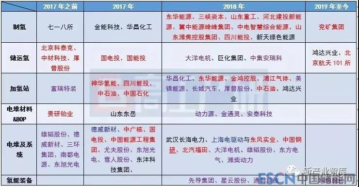 布局燃料電池產(chǎn)業(yè)的主要國企、央企、上市公司