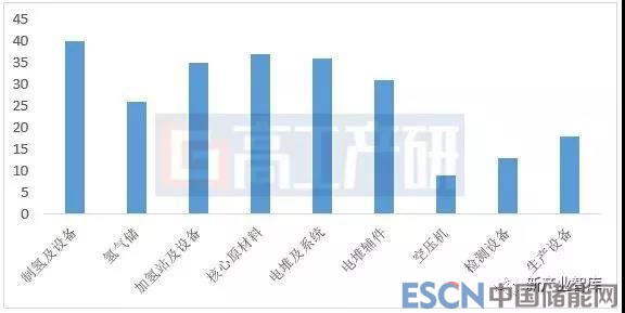 從現(xiàn)有企業(yè)分布的結(jié)構(gòu)來看,主要分布在電堆用核心材料、電堆及系統(tǒng)等環(huán)節(jié),這與當(dāng)前國內(nèi)燃料電池在核心材料、電堆環(huán)節(jié)的技術(shù)不成熟,與日韓差距較大的現(xiàn)狀吻合,新成的立企業(yè)在這些環(huán)節(jié)可獲得的技術(shù)進(jìn)展更大。