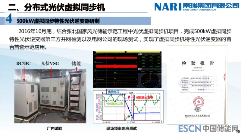 這是現(xiàn)場的應(yīng)用圖,這個是張北國家風(fēng)光儲光伏虛擬同步機,實現(xiàn)了500千瓦的虛擬同步機光伏逆變器的第三方檢測以及現(xiàn)場測試,實現(xiàn)了它的首臺首套示范應(yīng)用。