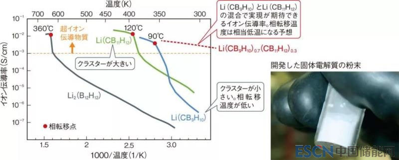 顯示了最近改進的clozo絡(luò)合物硼氫化物的離子電導(dǎo)率的概述。 過去,諸如BH 4的簇在高溫下具有高離子電導(dǎo)率,但是隨著溫度降低發(fā)生相變,導(dǎo)致離子電導(dǎo)率的快速降低。 東北大學(xué)折茂實驗室成功地增加了簇的大小,同時通過元素替換改善了不規(guī)則性并大大降低了相變溫度。 特別是,與兩種簇混合的材料至少在高至室溫時具有高離子傳導(dǎo)率。 (圖:折茂實驗室,(b)中的紅色虛線由日經(jīng)添加)。
