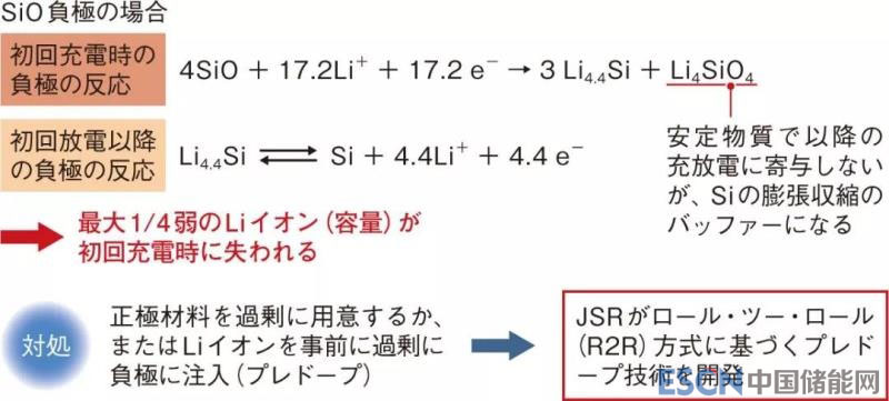 在許多Si基負極中,電池中的一部分Li離子與負極材料在初始充電時發(fā)生反應(yīng)并固化,因此存在容量大幅下降的問題。作為對策,存在Li離子的預(yù)摻雜。JSR和其他公司已經(jīng)開發(fā)出Li離子預(yù)摻雜的技術(shù)。