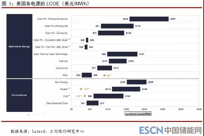 4.1 美國的風(fēng)、光成本已經(jīng)等同或低于火電