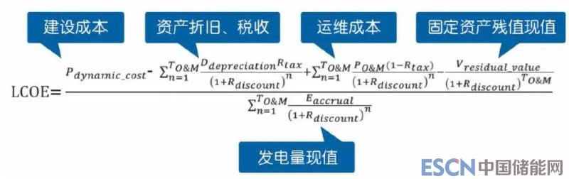 美國的風(fēng)電和光伏成本已經(jīng)低于火電。美國咨詢公司Lazard每年評估美國各類能源發(fā)電的全生命周期平準(zhǔn)化成本(LCOE),2018年11月公布了第12個LCOE版本。平準(zhǔn)化度電成本(Levelized Cost of Energy),就是對項目生命周期內(nèi)的成本和發(fā)電量進行平準(zhǔn)化后計算得到的發(fā)電成本,即生命周期內(nèi)的成本現(xiàn)值/生命周期內(nèi)發(fā)電量現(xiàn)值。根據(jù)這個定義,計算LCOE需要的輸入條件有建設(shè)期投資、運營期成本、運營期發(fā)電量與給定的折現(xiàn)率等。其基本公式如下: