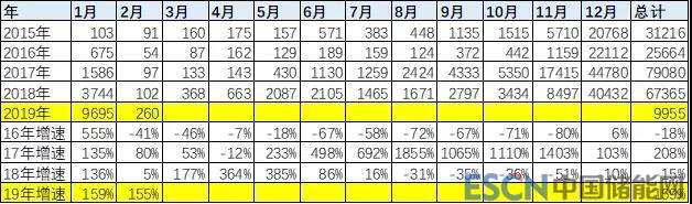 新能源專用車上牌走勢(shì)相對(duì)復(fù)雜, 19年1-2月同比增長(zhǎng)較好。因?yàn)?8年8-12月的恢復(fù)增長(zhǎng)仍相對(duì)較弱,今年的專用車增長(zhǎng)壓力不大。