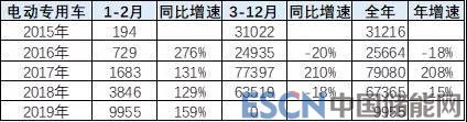 2019年1-2月的新能源專用車的銷量9955臺(tái),同比增速159%,走勢(shì)很強(qiáng)。雖然2018年新能源專用車市場(chǎng)走勢(shì)總體6.7萬(wàn)臺(tái)增速-15%的表現(xiàn)較弱,這也是暫時(shí)的影響。