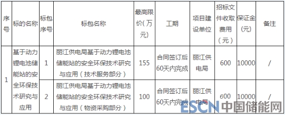 麗江供電局基于動力鋰電池儲能站的安全環(huán)保技術(shù)研究招標(biāo)公告