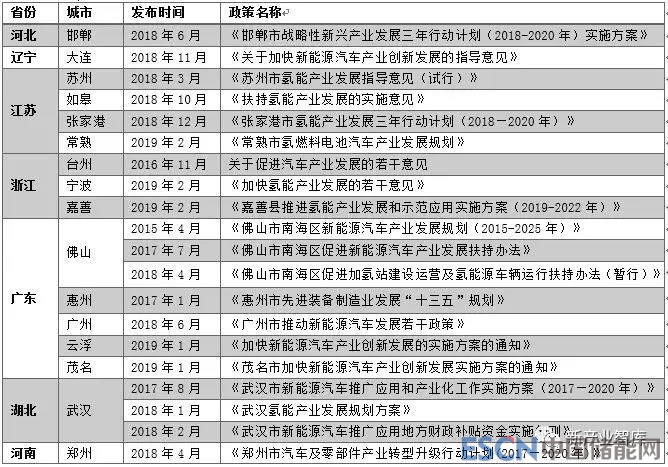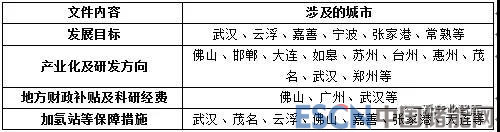 4)為完成目標(biāo),在人才、財(cái)政等方面的激勵(lì)措施。對(duì)比分析來看,當(dāng)前佛山、武漢、云浮、張家港等地區(qū)在規(guī)劃發(fā)展氫能與氫燃料電池汽車產(chǎn)業(yè)時(shí)力度較大。