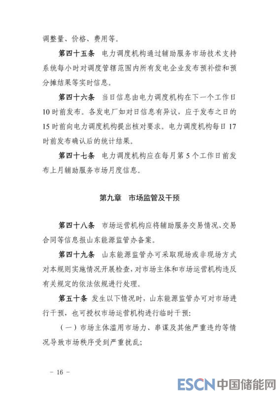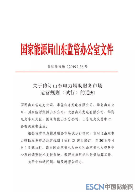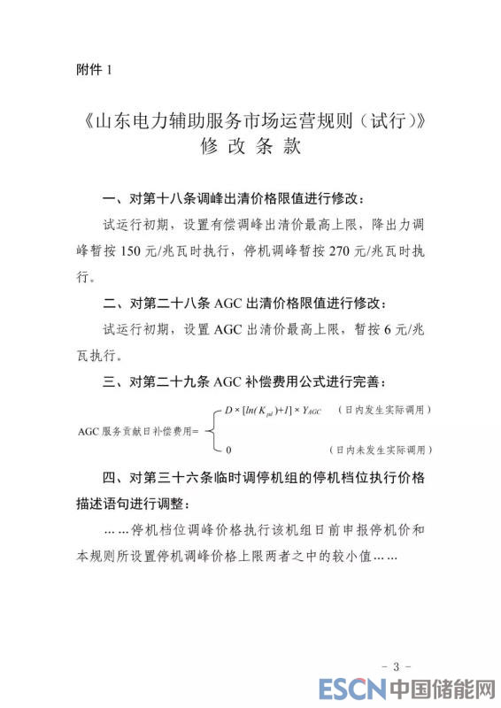 附通知及調(diào)整后的山東電力輔助服務(wù)市場運營規(guī)則:
