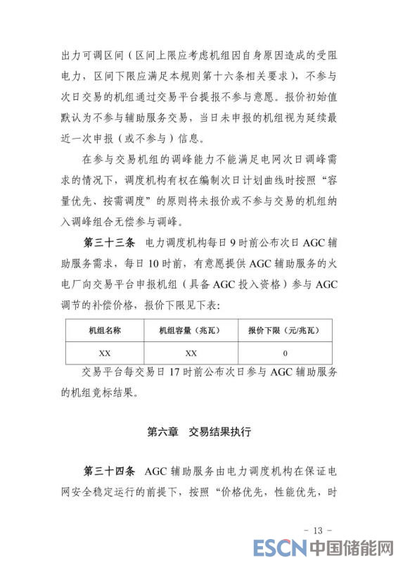 調(diào)頻方面:試運行初期,設(shè)置 AGC 出清價最高上限,暫按6 元/MW執(zhí)行。