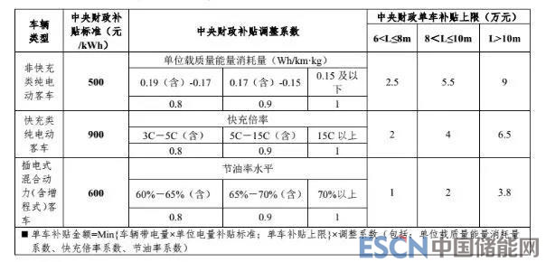 (一)新能源客車補貼標準。具體如下: