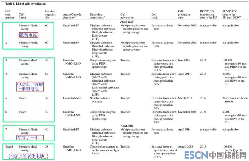 表1. 實(shí)驗(yàn)中所用的電池信息