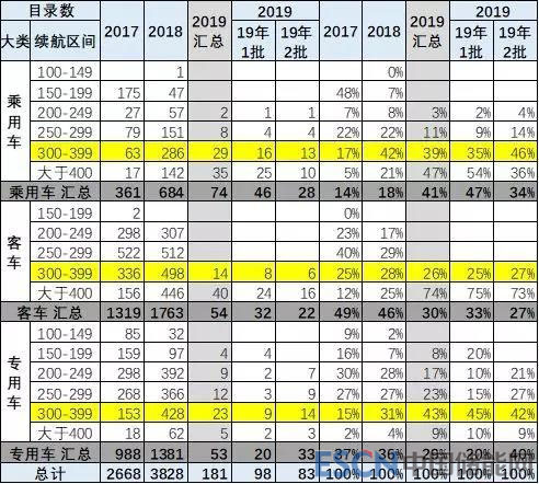 19年主要是客車目錄減少,客車市場(chǎng)潛力小、目錄相對(duì)較少,尤其是插混和快充的目錄車型不是很多。