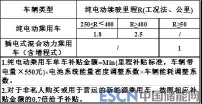 4. 根據(jù)純電動(dòng)乘用車能耗水平設(shè)置調(diào)整系數(shù)。純電動(dòng)乘用車整車能耗比《關(guān)于調(diào)整完善新能源汽車推廣應(yīng)用財(cái)政補(bǔ)貼政策的通知》(財(cái)建〔2018〕18號(hào))規(guī)定門檻提高10%(含)-20%的車型按0.8倍補(bǔ)貼,提高20%(含)-35%的車型按1倍補(bǔ)貼,提高35%(含)以上的車型按1.1倍補(bǔ)貼。