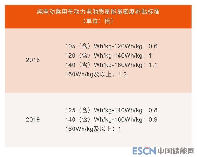 補(bǔ)貼金額“縮水”的同時,電池組的能量密度要求也有所調(diào)整。動力電池系統(tǒng)的質(zhì)量能量密度最低從2018年要求的105Wh/kg調(diào)整至125Wh/kg。補(bǔ)貼系數(shù)的分檔也更細(xì),125(含)-140Wh/kg的車型按0.8倍補(bǔ)貼,140(含)-160Wh/kg的車型按0.9倍補(bǔ)貼,160Wh/kg及以上的車型按1倍補(bǔ)貼,鼓勵動力電池向高能量密度發(fā)展。