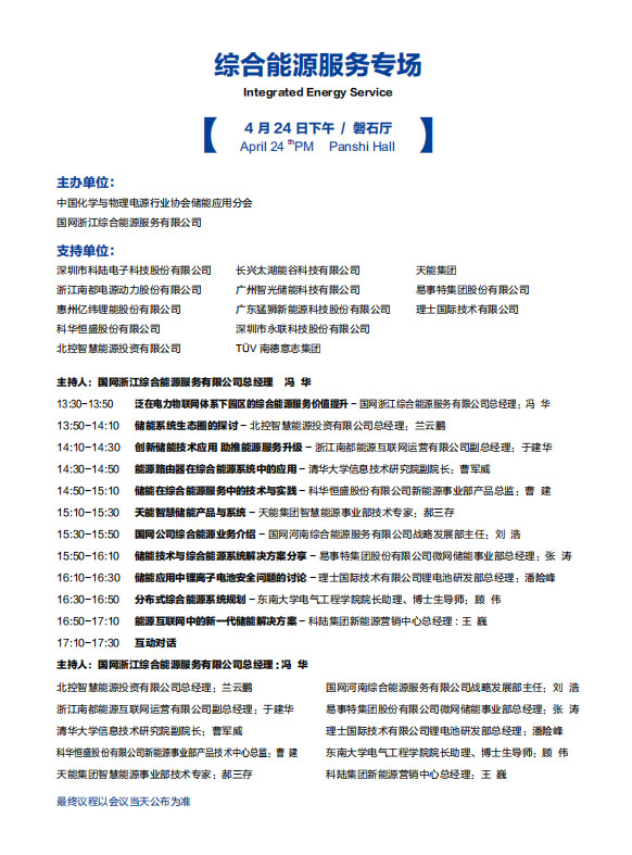 以下是《綜合能源服務(wù)專場(chǎng)》議程內(nèi)容,其他各專場(chǎng)議程組委會(huì)將相繼發(fā)布,敬請(qǐng)關(guān)注!