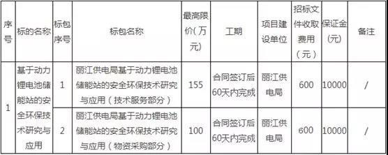 麗江供電局基于動力鋰電池儲能站的安全環(huán)保技術(shù)研究招標(biāo)公告