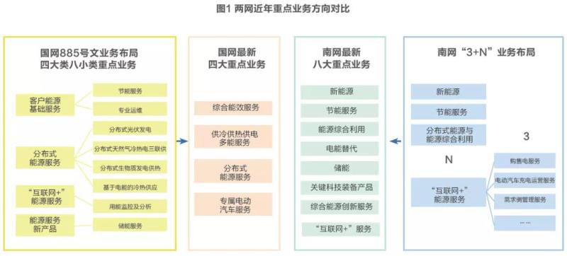 經(jīng)過近兩年摸索與實踐,兩網(wǎng)均對綜合能源服務(wù)重點業(yè)務(wù)方向進行了適當調(diào)整,業(yè)務(wù)更加具像化、界面更加清晰化、目標更加精準化。