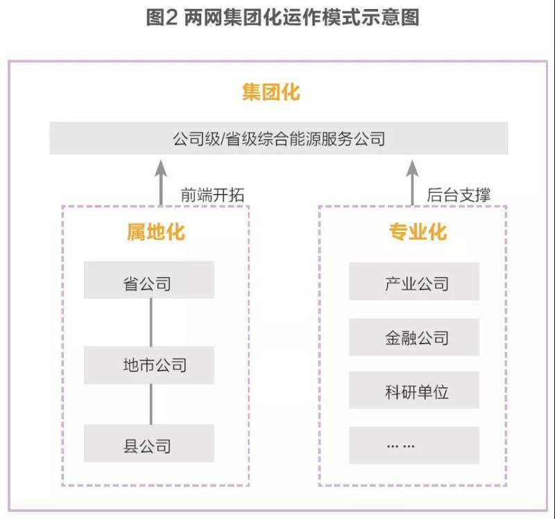 集團化、屬地化、專業(yè)化成為兩網(wǎng)拓展綜合能源服務(wù)市場的“三化”原則。省市縣公司具有屬地化優(yōu)勢,可以充分利用好大客戶經(jīng)理直接接觸用戶機會,掌握第一手的客戶需求信息,有效拓展營銷渠道。產(chǎn)業(yè)單位、金融單位、科研單位和集體企業(yè)等則延續(xù)專業(yè)化發(fā)展道路。通過專業(yè)化和屬地化的有效協(xié)同,可加強各單位間的優(yōu)勢互補和資源統(tǒng)籌,從而實現(xiàn)集團整體業(yè)務(wù)的良性運作和有序發(fā)展,實現(xiàn)集團利益的最大化。