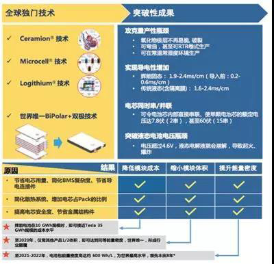 技術(shù)優(yōu)勢上,面對薄膜、固態(tài)高分子、氧化物、硫化物幾個技術(shù)主流,輝能選擇的是氧化物體系,并憑借鋰陶瓷電池這一技術(shù)解決了固態(tài)電池安全和性能的核心問題。輝能科技發(fā)布的能將新能源車電池包體積減半、重量減少三成、成本降低三成3D封裝技術(shù),也是一大亮點。
