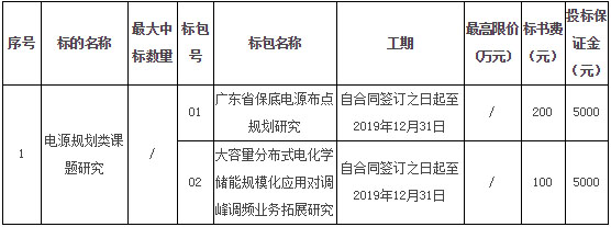 廣東省保底電源布點(diǎn)規(guī)劃、大容量分布式電化學(xué)儲(chǔ)能規(guī)模化應(yīng)用對(duì)調(diào)峰調(diào)頻業(yè)務(wù)拓展研究項(xiàng)目招標(biāo)公告