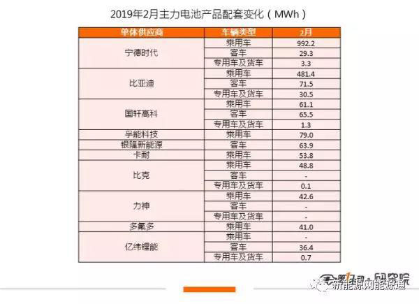 2月寧德時(shí)代在乘用車上的裝機(jī)量為992.2 MWh,主要配套車企為北汽新能源、吉利汽車和上汽乘用車,同時(shí)還包括蔚來(lái)、威馬汽車、合眾新能源等造車新勢(shì)力。電池類型基本為三元材料電池。客車和專用車方面裝機(jī)量較少,總共32.6MWh,主要配套車企為宇通客車、中通客車等,97.9%為磷酸鐵鋰電池。