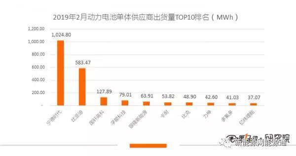 2月只有寧德時(shí)代裝機(jī)量超過(guò)1GWh,比亞迪為583.47MWh,排名第三的國(guó)軒高科2月裝機(jī)量為127.89MWh,市占率為5.69%,較上月有所提升。