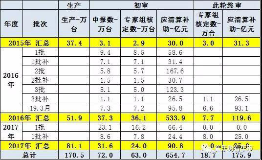 從2015年到2017年共生產(chǎn)170萬臺新能源車,目前統(tǒng)一到的申報數(shù)量達到72萬臺,專家組審定數(shù)量達到63萬臺,補貼金額,申報數(shù)量達到654億元。