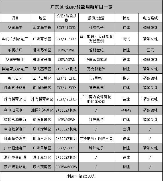 目前,據(jù)公開資料顯示,廣東火電AGC儲能調(diào)頻項目已達(dá)十余個,不過開工并網(wǎng)項目仍然較少。