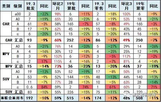 19年4月1日的增值稅調整降3個點是重大的制造業(yè)利好,各制造行業(yè)都受益巨大,部分車企也迅速跟進降價行動,3月批發(fā)表現(xiàn)相對較好。