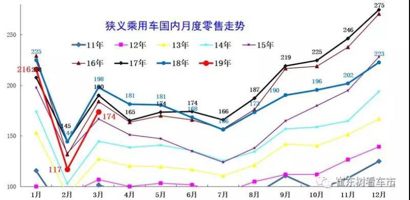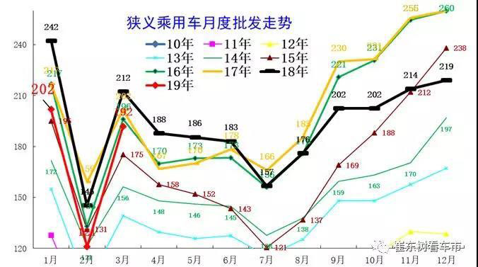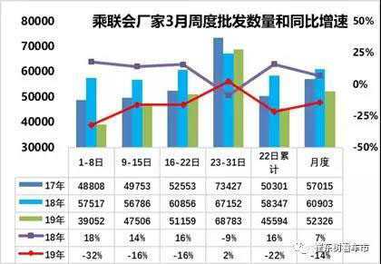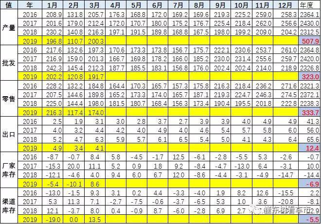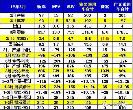18年車市的批走勢出現(xiàn)前高后低趨勢,對2019年年初壓力很大,19年3月份達到192萬臺,同比增長-10%,3月批發(fā)回歸到16年3月水平。