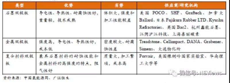 雙極板中,石墨雙極板最為成熟,金屬雙極板是未來方向。雙極板主要起到輸送和分配燃料、在電堆中隔離陽極陰極氣體的作用。雙極板占整個燃料電池重量的60%,成本的13%。主要功能有:連接單體模塊、分隔反應(yīng)氣體、收集電流、散熱和排水等。其基體材料需具有強度高、致密性好、導(dǎo)電和導(dǎo)熱性能好等特點,材料的選擇將直接影響燃料電池的電性能和使用壽命。石墨雙極板目前最成熟,金屬與復(fù)合村料雙極板有較大發(fā)展空間。根據(jù)基體材料的不同,雙極板可以分為石墨雙極板、金屬雙極板和復(fù)合材料雙極板,其中石墨雙極板最早被開發(fā)使用,前技術(shù)已經(jīng)成熟,并已實現(xiàn)商業(yè)化大規(guī)模應(yīng)用了。金屬雙極板是替代石墨雙極板的最使選擇,表面改性的多涂層結(jié)構(gòu)金屬雙極板具備較大的發(fā)展空間。金屬雙極板的機械性能、加工性能、導(dǎo)電性等都十分優(yōu)異,易于批量化生產(chǎn)降低成本。