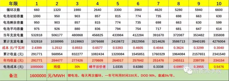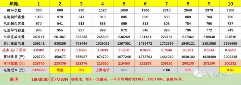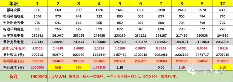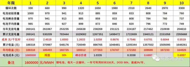 a.1MWH儲能系統(tǒng),峰谷價差第一年收益為18.83萬元/年;