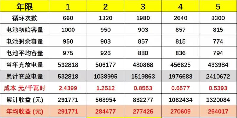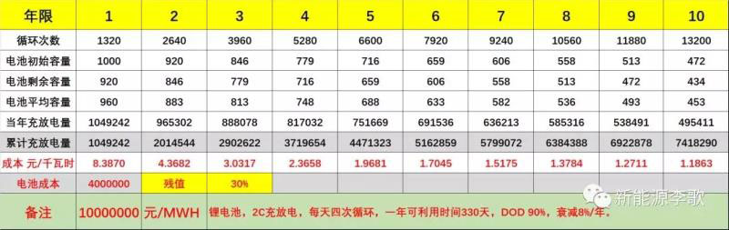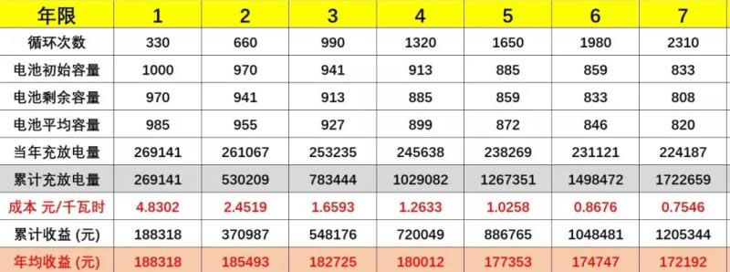 b.剩余容量80%,循環(huán)次數(shù)3800次左右,即4.2年,110萬元;