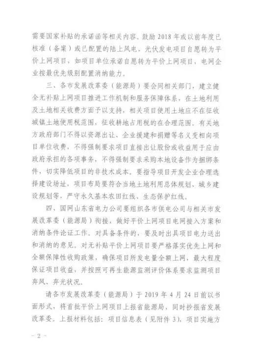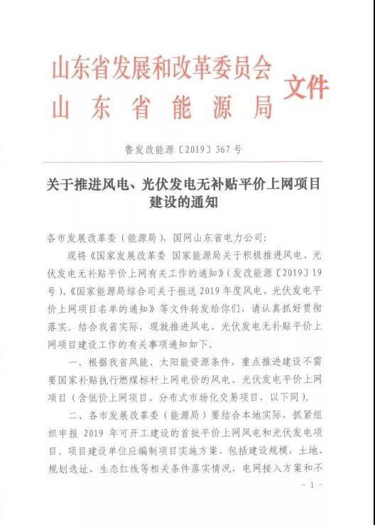 近日,山東省發(fā)改委、能源局下發(fā)《關于推進風電、光伏發(fā)電無補貼平價上網(wǎng)項目建設的通知》,指出根據(jù)山東省風能、太陽能資源條件,重點推進建設不需要國家補貼執(zhí)行燃煤標桿上網(wǎng)電價的風電、光伏發(fā)電平價上網(wǎng)項目(含低價上網(wǎng)項目、分布式市場化交易項目)。要求各市發(fā)改委(能源局)于2019年4月24日前以書面形式,將首批平價上網(wǎng)項目上報山東省能源局,同時抄送發(fā)展改革委。