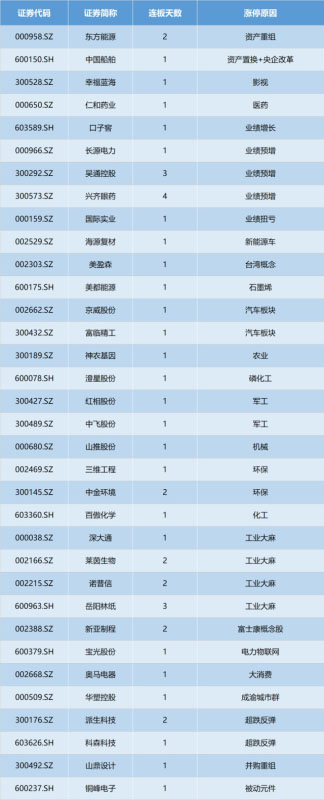 個股方面,兩市跌停個股有1只(非ST),漲停個股有59只(非ST),數(shù)量上看,漲停股較昨日幾乎腰斬,兩市連板股超20只。盤面上,汽車股東風(fēng)科技(600081.SH)未能成功連板,興齊眼藥(300573.SZ)、紅陽能源(600758.SH)、力帆股份(601777.SH)、春興精工(002547.SZ)、吳通控股(300292.SZ)、貴研鉑業(yè)(600459.SH)、洲際油氣(600759.SH)、中鋼天源(002057.SZ)、岳陽林紙(600963.SH)、富春股份(300299.SZ)、萬馬科技(300698.SZ)、南京熊貓(600775.SH;00553.HK)等個股連續(xù)超過2日連板,主要分布在5G、氫能源電池板塊上。